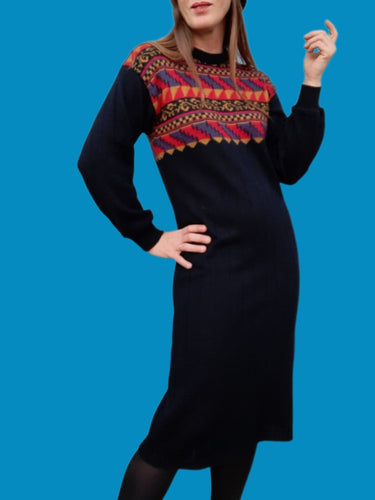 Robe vintage Manon - Lainage géométrique. Taille M, 38, 40. Technil. Made in France.
