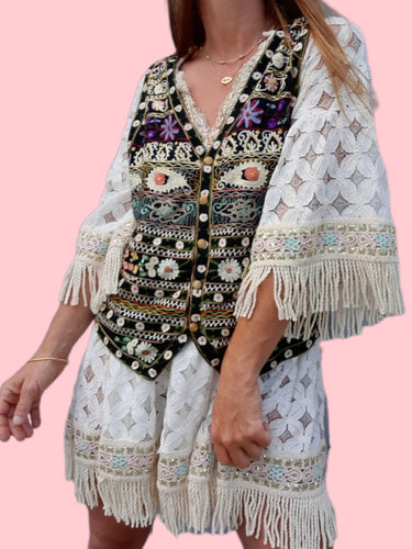 Gilet "Seconde" Carrie - Broderies bohèmes, folk. Taille L, 40, 42