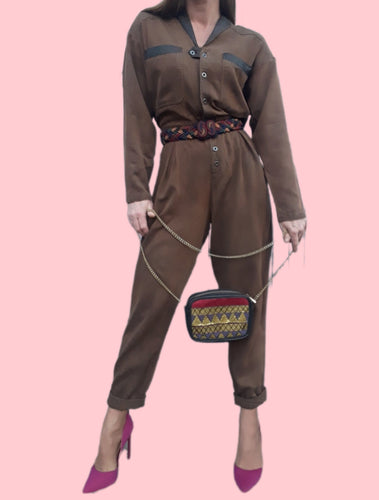 Combinaison vintage Natasha - A rayures dorées. Taille S, 36, 38. Fabriqué en France