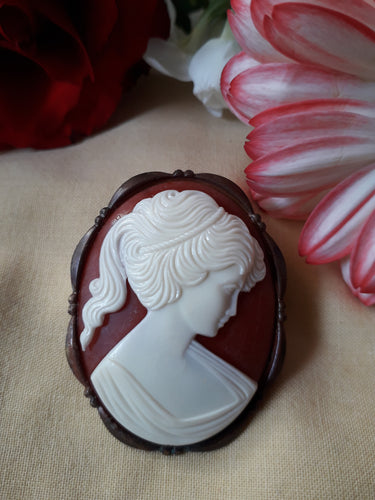 Broche vintage Cassandre. Couleur bronze. Epingle à poussoir.
