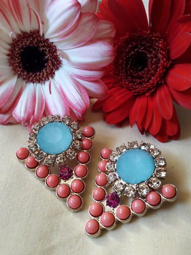 Boucles d'oreilles 'Seconde' Léa - Triangle de strass et perles. Fermoir tige