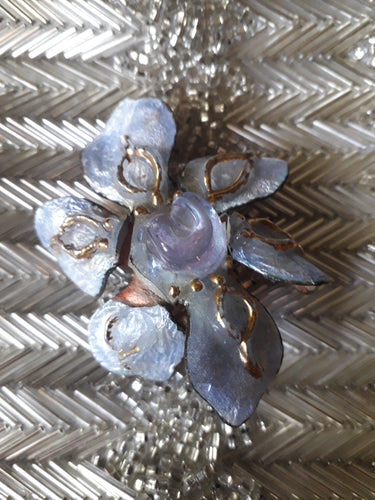 Broche ou pendentif ancien - Fleur parme. Créations d'art Geneviève France