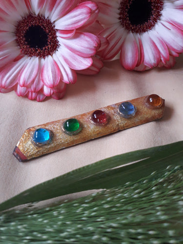Broche vintage - Cabochons multicolores. Création d'art Geneviève. France