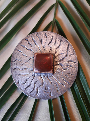 Broche vintage Nora - Cabochon orange. Métal argenté