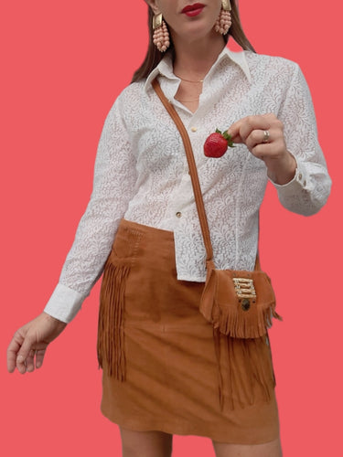 Chemisier vintage Melissa - Guipure blanc. Taille S, 36, 38.