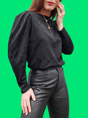 Haut vintage Anne - Manches bouffantes. Tissus fleuri irisé noir. Taille S, 36, 38. Pecci. Made in France.