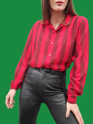 Chemisier vintage Donatienne - A Rayures rouges et noires. Taille S, 36, 38.