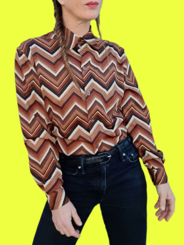 Chemisier vintage Marina - Zigzag. Taille S, 36, 38. Yessica.