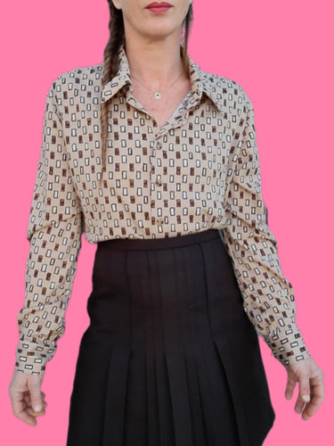 Chemisier vintage Anissa - Imprimé cubique. Taille S, 36, 38. Burton.
