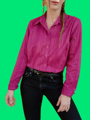 Chemisier vintage Peggy - Fuchsia à rayures irisées. Taille M, 38, 40.