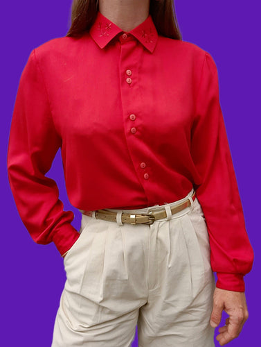 Chemisier vintage Nadya - Rouge avec duo de boutons. Taille M, 38, 40. Pierbé. Made in France