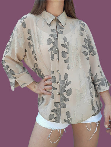 Chemisier vintage Janis - Boutons à brides. Taille XL, 42, 44.