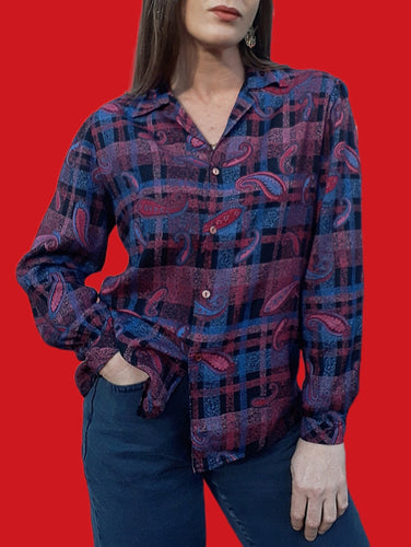 Chemisier vintage Roxane - Motifs paisley et carreaux. Taille S, 36, 38. Made in Germany