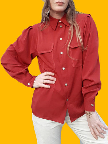 Chemisier Vintage Mathilde - En soie. Col Lavallière brique. Taille M, 38, 40. Fabriqué en France