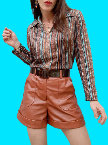 Chemisier vintage Faustine - Rayures géométriques. Taille M, 38, 40.