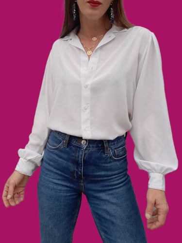 Chemisier vintage Jeanne - Coupe classique blanc. Taille L, 40, 42. PierBé. Made in France.