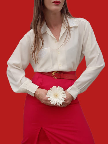 Blouse vintage Chantal - Broderie fantaisie. Taille M, 38, 40. Franck Fils Paris. Made in France.