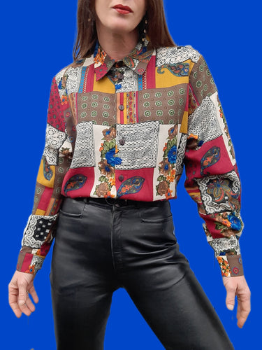 Chemisier vintage Jenny - Patchwork bariolé. Taille M, 38, 40. Sophie de Sologne. Made in France.