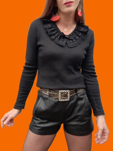 Haut "Seconde" Perette - Col en tulle froncé. Taille S, 36, 38. Côte Anglaise. Made in France.