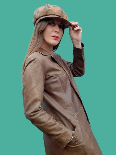 Chapeau vintage Clémence - Béret plat caramel à boutons fantaisie.
