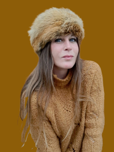 Toque / Chapka vintage Svetlana - Cuir & fourrure marron crème à poils longs