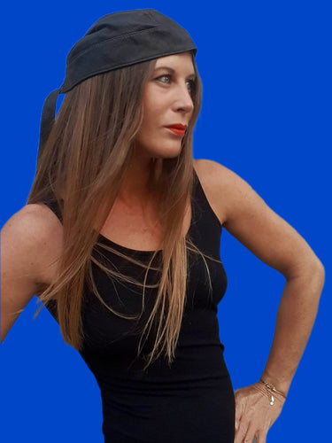 Casquette vintage Lana - Cuir noir, visière cloutée et chaîne. Biker. Made in USA