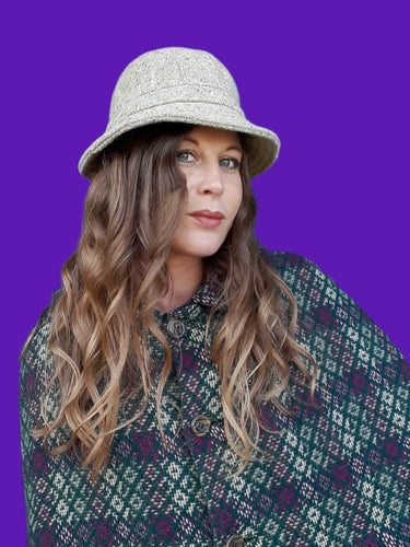 Chapeau vintage Daphnée -100 % Laine beige chinée. Fabriqué en France