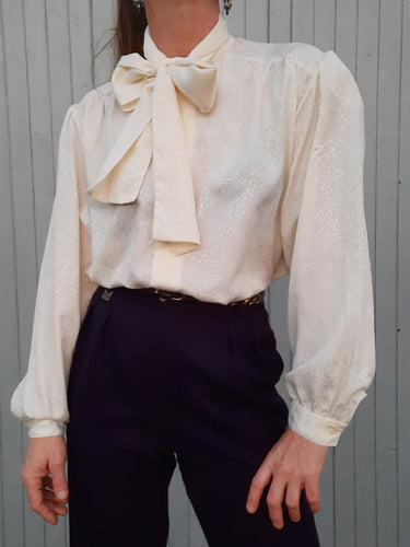 Chemisier vintage Anaïs - Col Lavallière, plumetis irisé. Taille XXL, 44, 46. Made in France