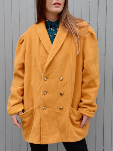 Manteau vintage Célia - Pure laine vierge moutarde. Taille XXL, 44, 46.
