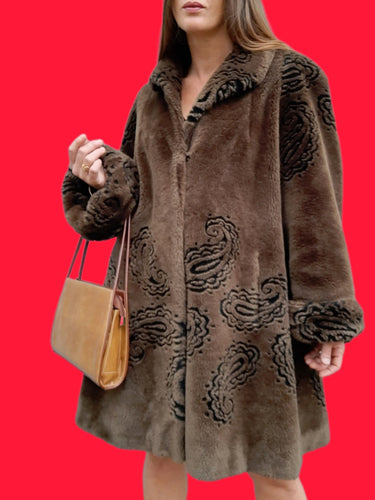 Manteau vintage Véronika - Fourrure synthétique. Imprimé cachemire. Taille XXL, 44, 46. Made in France Made in France.