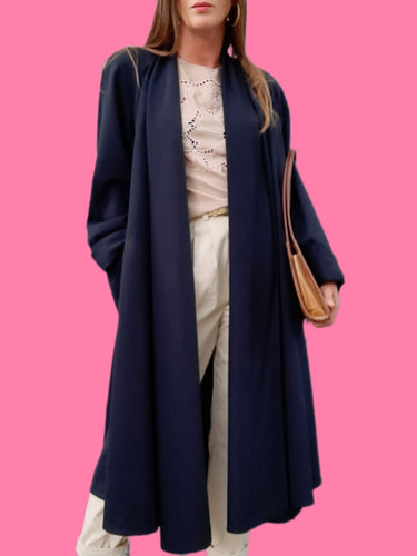 Veste longue vintage Isadora - Drapé bleu marine. Ample. Taille XXL, 44, 46. Made in France