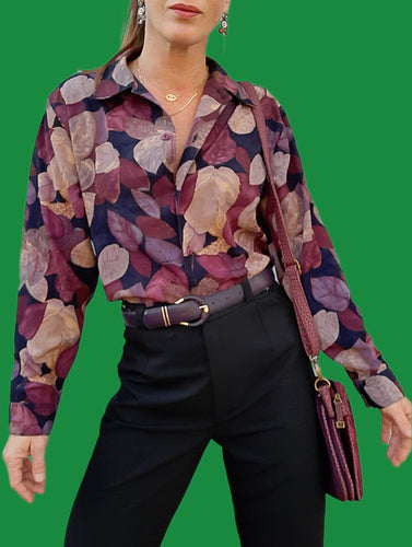 Chemisier vintage Sarah - Feuillages violets. Taille XXL, 44, 46. Damart