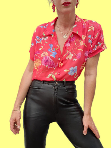 Chemisier vintage Solange - Rouge fleurs. Taille L, 40, 42. La juperie.