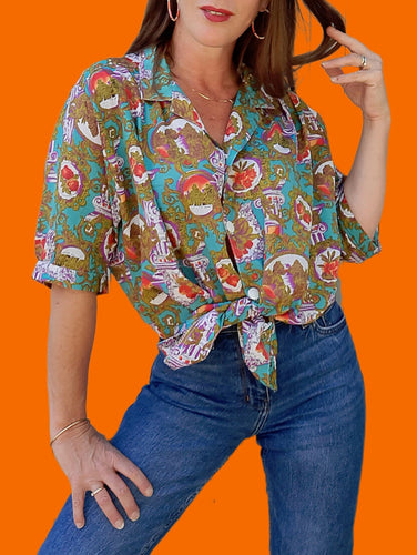 Chemisier vintage Joëlle - Imprimé antique. Taille XL, 42, 44. Made in France