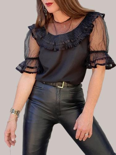 Blouse vintage Pernille - Voile volanté et plumetis. Taille S ou 36, 38.