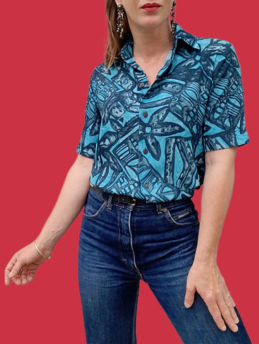 Chemisier vintage Andréa - Graphique et coloré. Taille M, 38, 40.