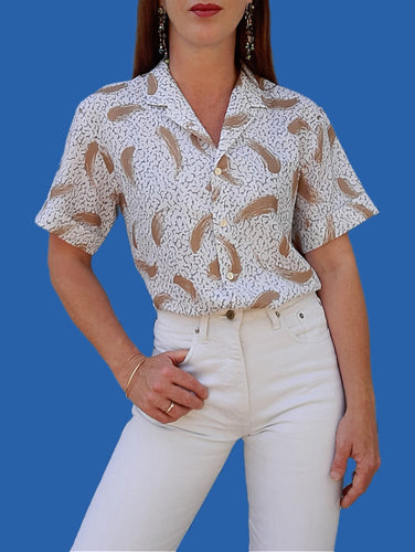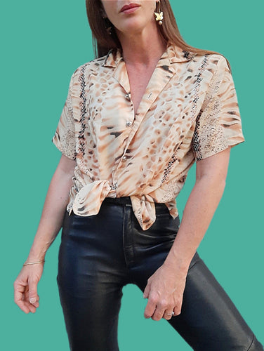 Chemisette vintage Jenn - Imprimé Animalier. Taille L, 40, 42. Marron, beige et noir.