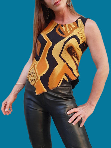 Top vintage Bintou - Motif Africain. Pointu devant. Coton. Taille S, 36, 38.