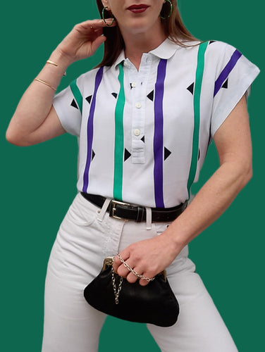 Tee-shirt vintage Margot - Rayures géométriques. Taille M, 38, 40. Daniel D. Made in France