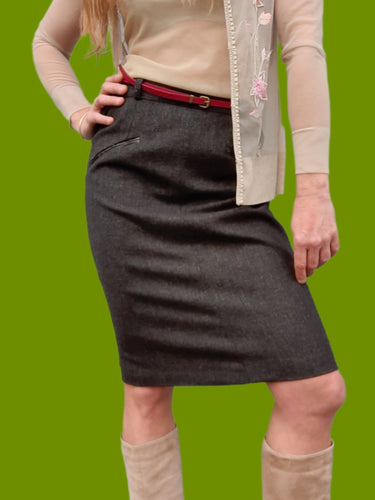 Jupe vintage Livia - Carreaux en laine. Taille XXS, 32, 34. Fabriqué en France
