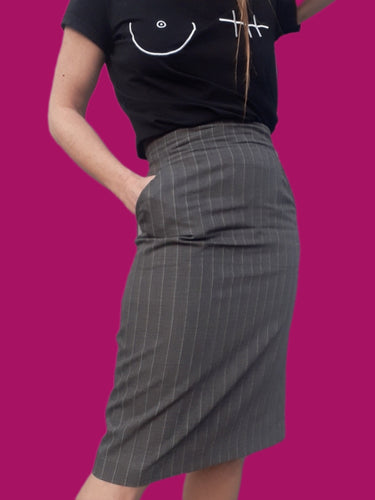 Jupe vintage Maria - Rayée grise. 100 % Laine Vierge. Taille S ou 36