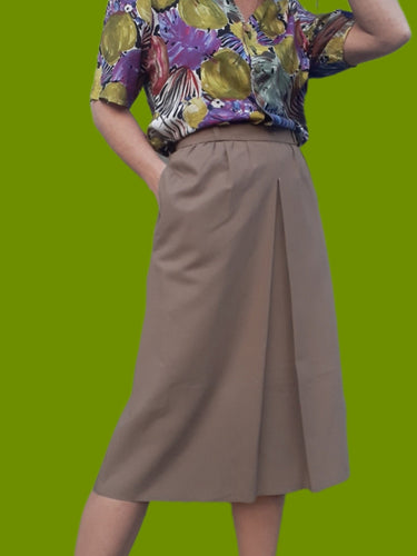 Jupe vintage Domitille - Couleur taupe. Taille L, 40, 42. Fabriqué en France