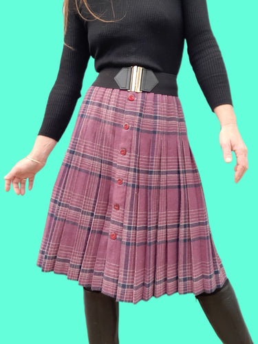 Jupe vintage Lucie - Tartan violet et bleu marine. Taille M, 38, 40. Made in France