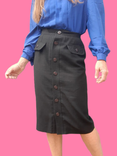 Jupe vintage Yona - Noire boutonnée devant. Taille S, 36, 38. Franck et Fils.