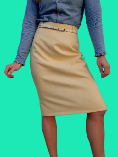 Jupe crayon vintage Linette - Jaune pastel. Taille L, 40, 42. Damart.