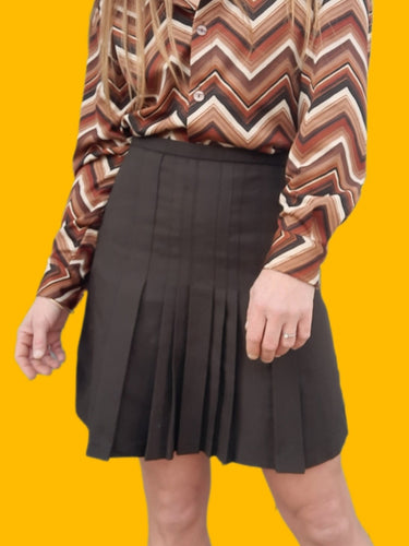 Mini jupe plissée vintage Sophie - Marron. Taille S, 36, 38. Made in France.