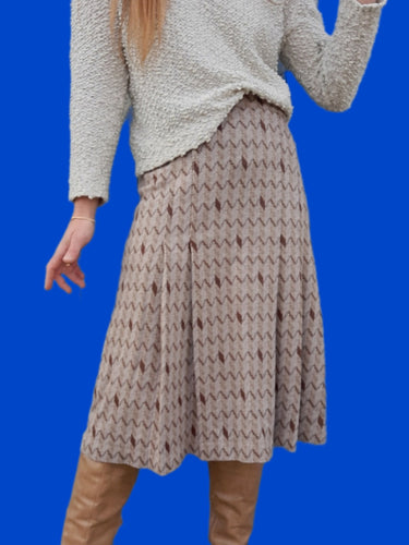 Jupe plissée vintage Karine - Imprimé zigzag. Taille L, 40, 42. Griffon et frères. Made in France.