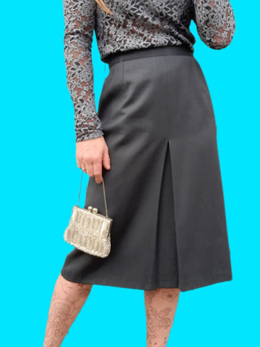 Jupe vintage Eugénie - Grise à plis creux. Taille L, 40, 42.