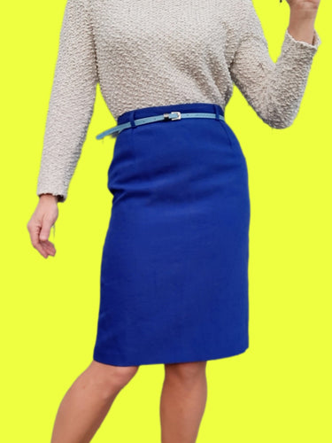Jupe crayon vintage Line - Bleu roi. Taille XS, 34, 36. Made in France