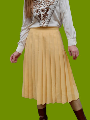 Jupe vintage Téssy - Plissée jaune. Taille L, 40, 42. Weinberg. Made in France